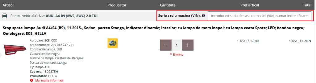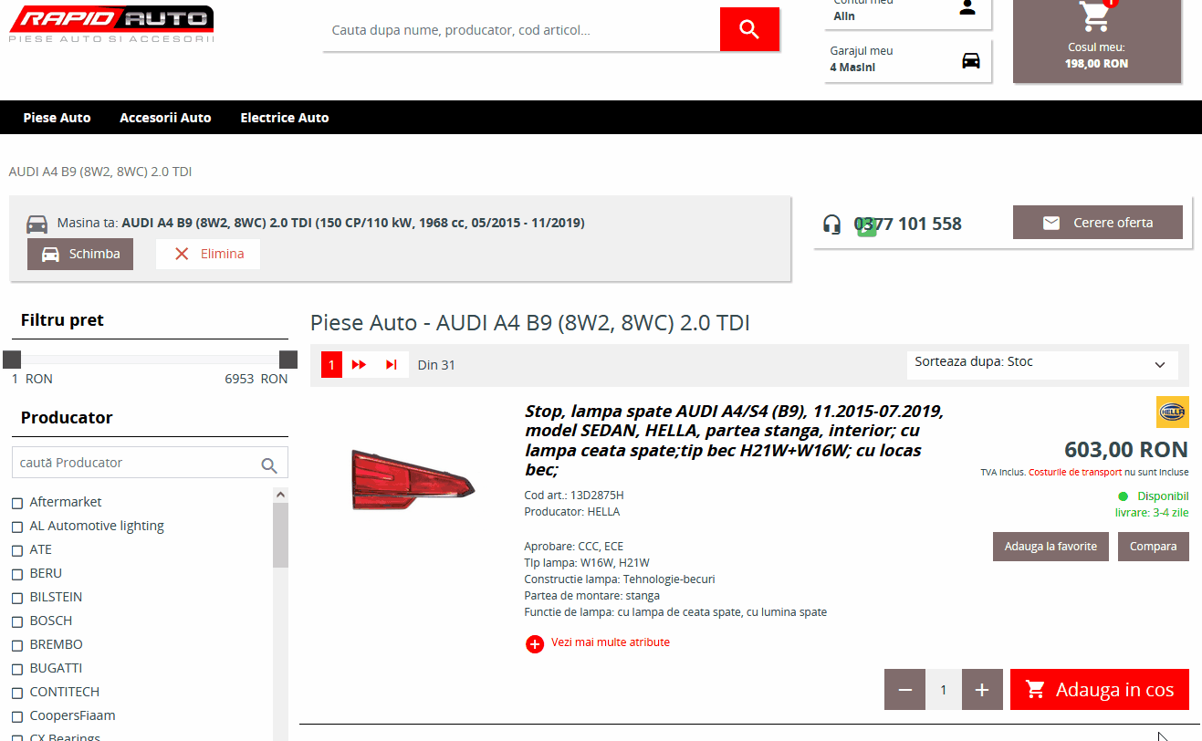 – Caută piesa de care ai nevoie folosind căutarea sau categoriile din site
