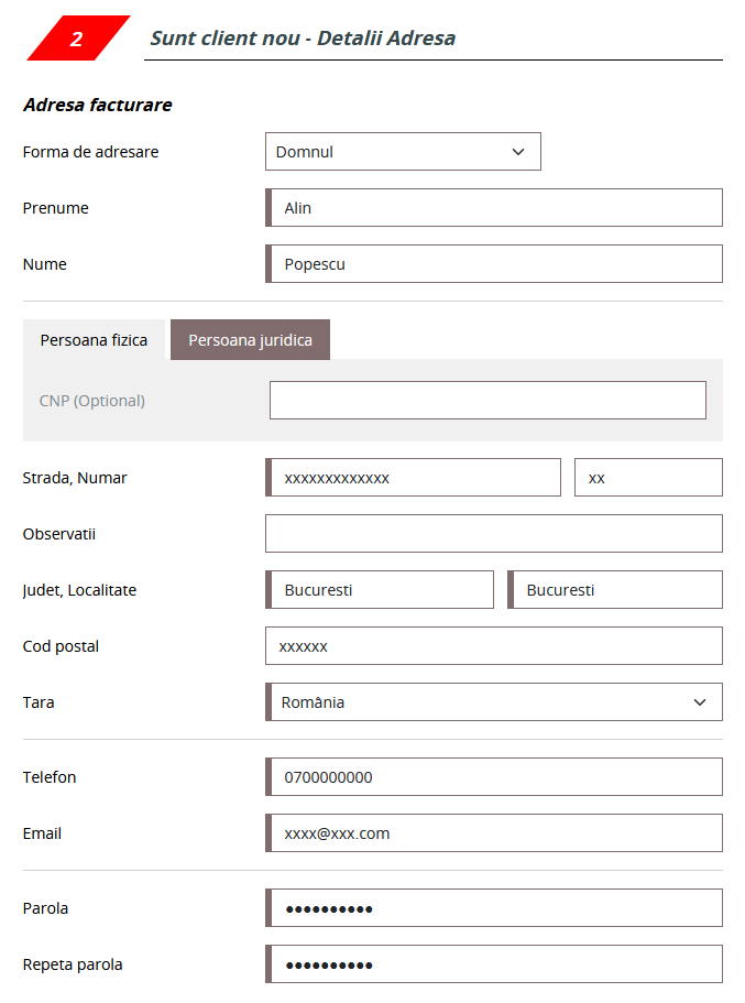 Dacă sunteți client nou este necesar să inserați datele solicitate în câmpurile din secțiunea marcată cu numarul 2